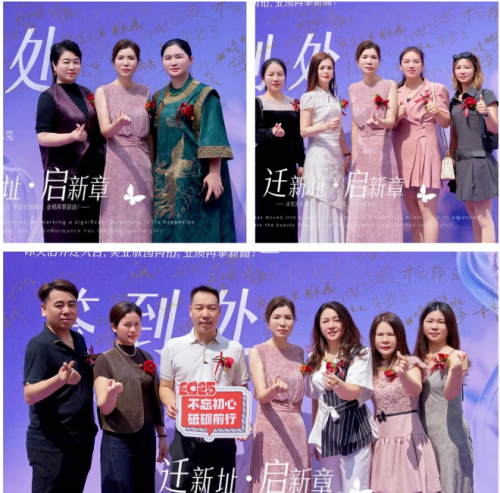 在庄严的仪式环节,冰芙洁创始人胡总、周总先后致辞,他们回顾了品牌23年的风雨历程,展望了立足松山湖、辐射全国的全新未来,其言辞中充满了对未来的信心与对合作伙伴的感谢。紧随其后的乔迁剪彩环节将现场气氛推向高潮,十位核心管理层共同执剪,标志着冰芙洁新纪元的正式启航。